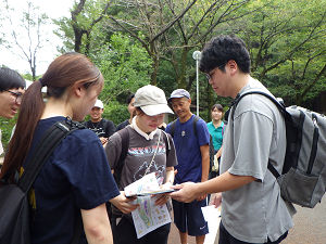 当日は施設に到着後、まずはラリーを行います!ラリーでは、施設内に点在するいくつかのポイントを巡ります。どのポイントを巡るかによりお昼のバーベキューで食べられるものが決まっていくため、班での話し合いが重要となります。今回は4つの班に分かれ、実際に複数のパターンで巡り、各ポイントの見つけやすさやポイント間の移動時間、施設内の危険個所などの確認を行いました。