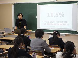 公益社団法人チャンス・フォー・チルドレン様には、「子どもたちがやりたいことを思いきりやれる社会を目指して~学びや体験を支える方法とその仕組み~」をテーマにお話を伺いました。日本における子どもの相対的貧困の現状やそれに伴う教育・体験格差について、具体的な事例を交えて分かりやすくご説明いただき、生徒たちは熱心にメモを取りながら耳を傾けていました。また、教育・体験格差の問題に対して、経済的に困難を抱える子どもたちをどのように支援し、持続的に事業を行なっていくのか、という運営の工夫と課題についても学ぶことができました。